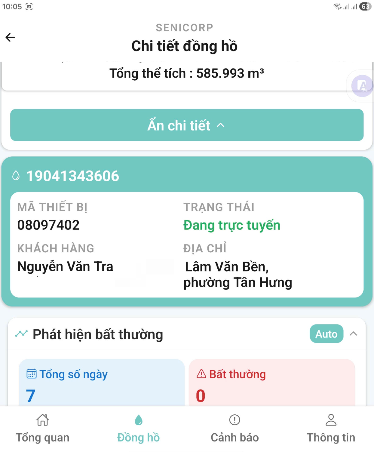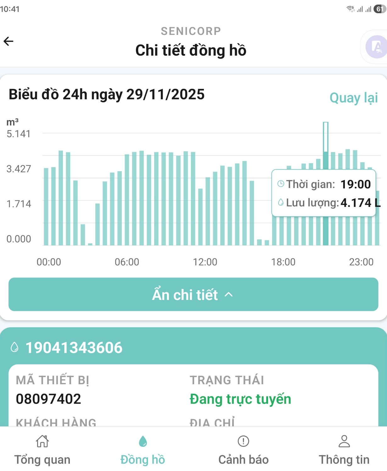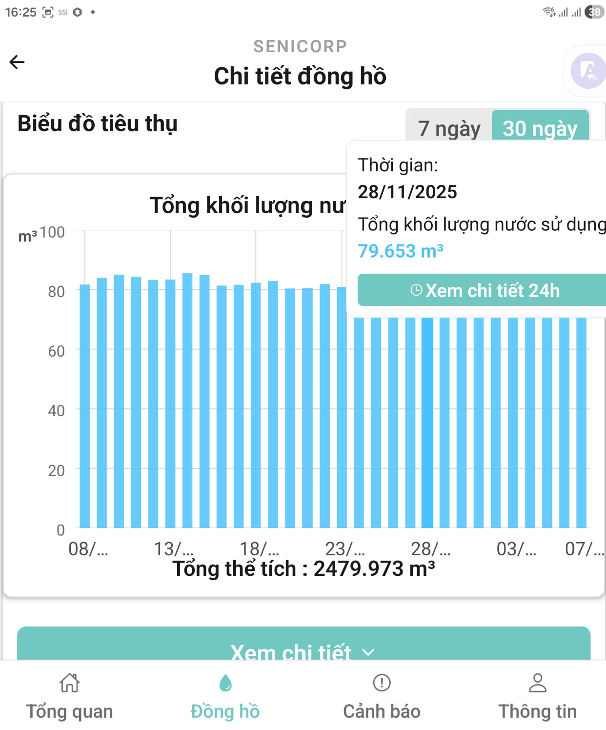 - Xem chi tiết chỉ số đồng hồ nước theo thời gian :