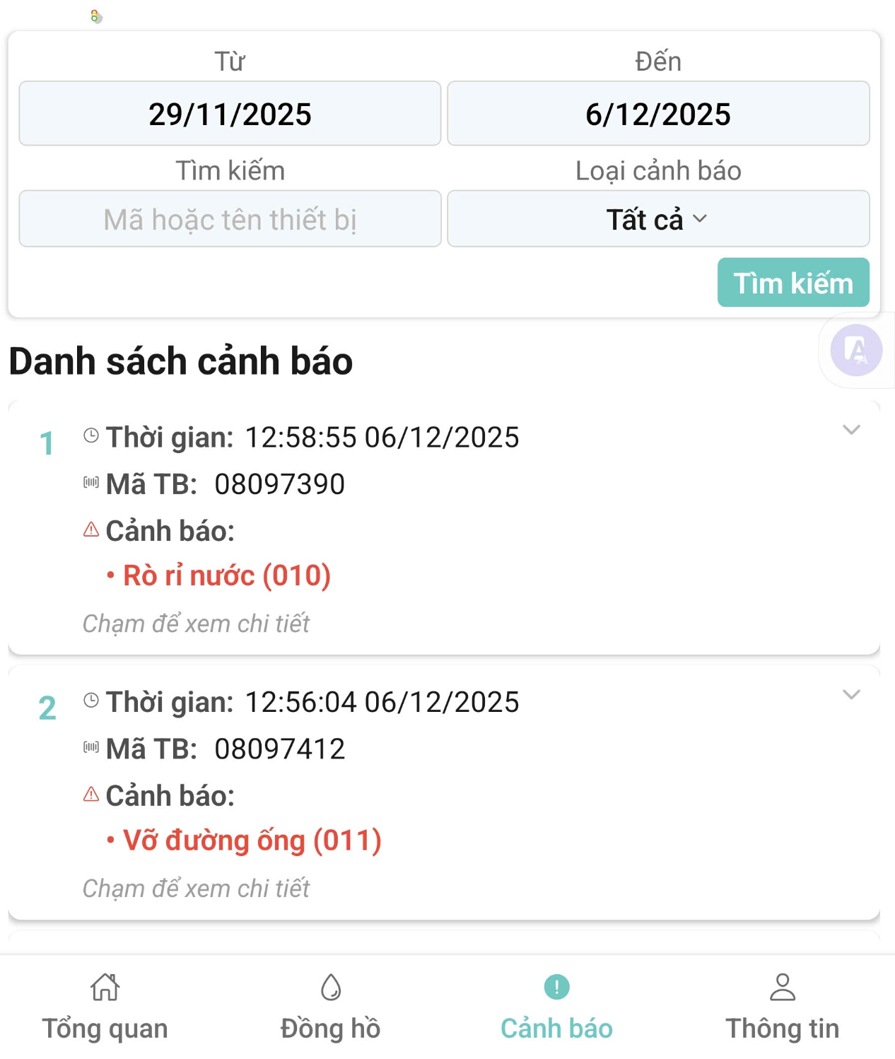 3. Xem chi tiết các cảnh báo theo thời gian thực :